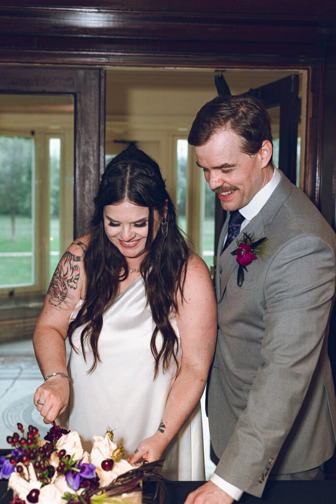 Their reception was just as beautiful as their ceremony. I was truly obsessed with the details! In the reception room, dark and moody florals by Moss Modern Flowers matched the simple and elegant cake from Broken Tart. Friends and family shared cocktails and hugs outside on the porch. A few guests shared toasts during dinner, then Caitlin and Jon cut their wedding cake. We snuck outside to capture some beautiful golden hour portraits, and the lighting was simply perfect. I also made sure to snap a few maternity photos, as Caitlin was just a few months away from giving birth to their son!